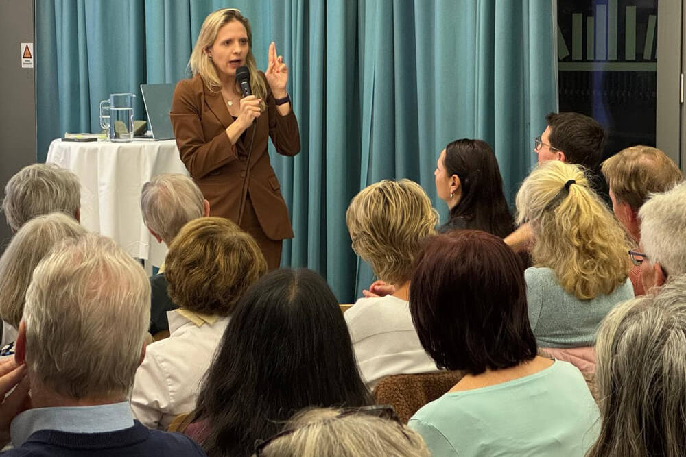 Live aus der Ukraine : Luzia Tschirky erzählte rasant und beeindruckend aus ihrem Leben als Reporterin - und wie sie dabei Mensch geblieben ist.